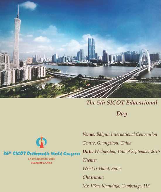 The themes for the China meeting are 'Hand & Wrist' and 'Spine' and the day will focus on all the elements of Hand and Wrist and Spine Surgery right from anatomy and surgical approaches to complex case discussion. Dedicated Faculty along with key opinion leaders from over 15 countries will be lecturing on the course. The SICOT Educational Day Committee (Emmanuel Audenaert - Belgium, Patricia Fucs - Brazil, Eric Tortosa - Panama, Peter Yau - Hong Kong, Mandeep Dhillon - India & Ashok Johari - India) have worked extremely hard to produce a great programme. So, if you wish to learn, share, debate and discuss ideas and surgical techniques in an exciting environment with a group of international surgeons in one room, the Educational Day is the place for you. We look forward to seeing you there!